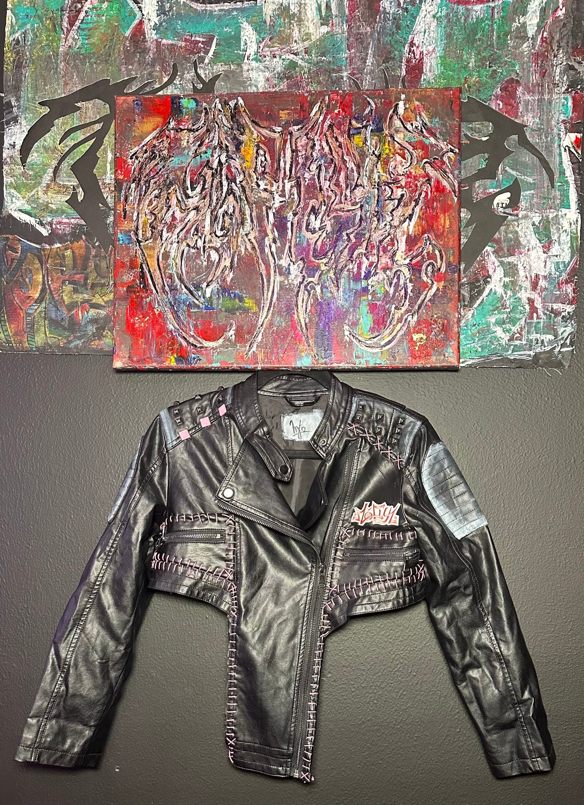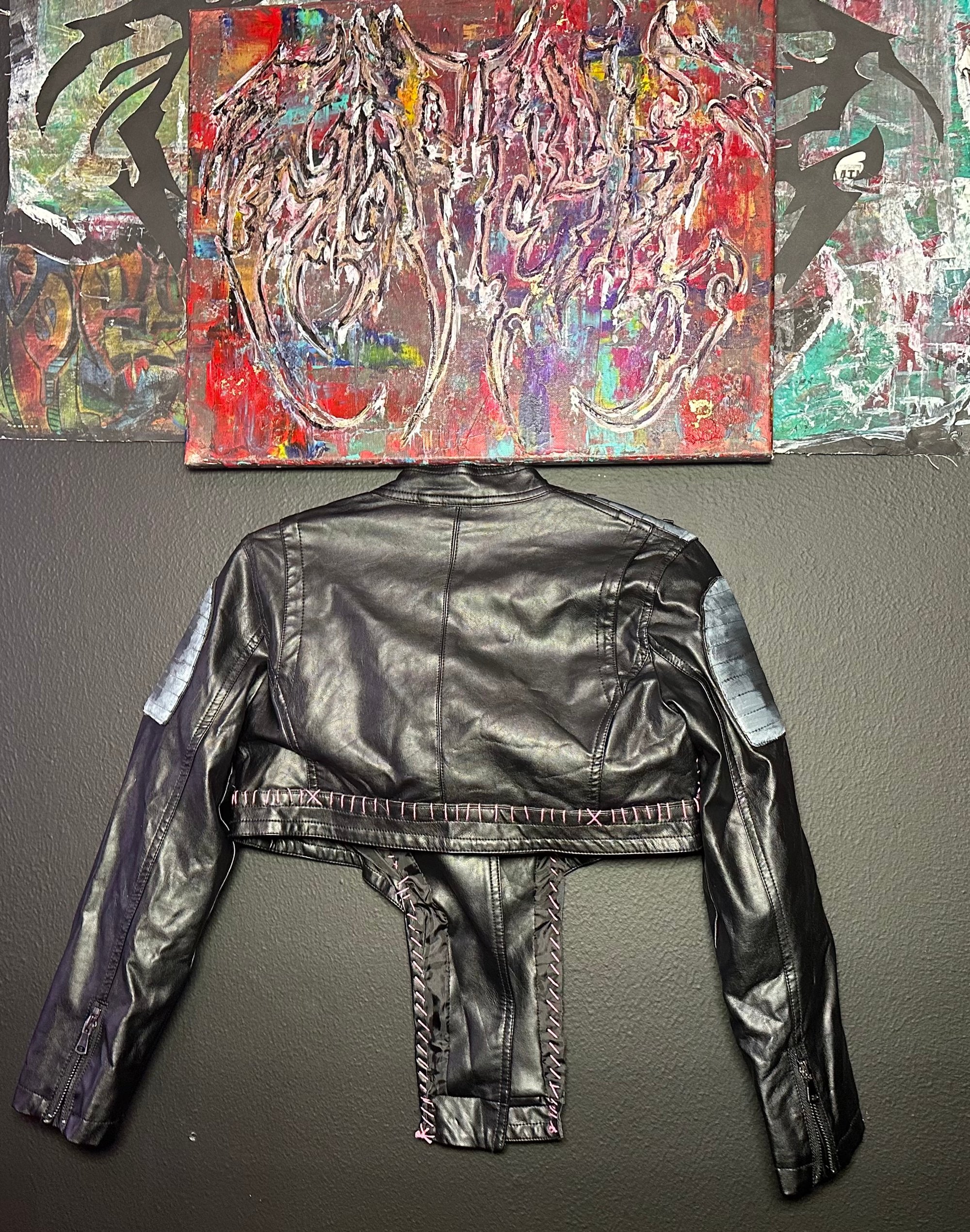 MOFLYZ CROP LEATHER STUDDED JACKET